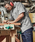 Work in lightweight comfort of the Men’s Lightweight Short Sleeve Tradie Shirt. This short sleeve shirt is made of cotton twill to keep you cool during hot weather. You can keep your mobile phone safe in the mobile phone pocket. For other items, it has three large chest pockets.